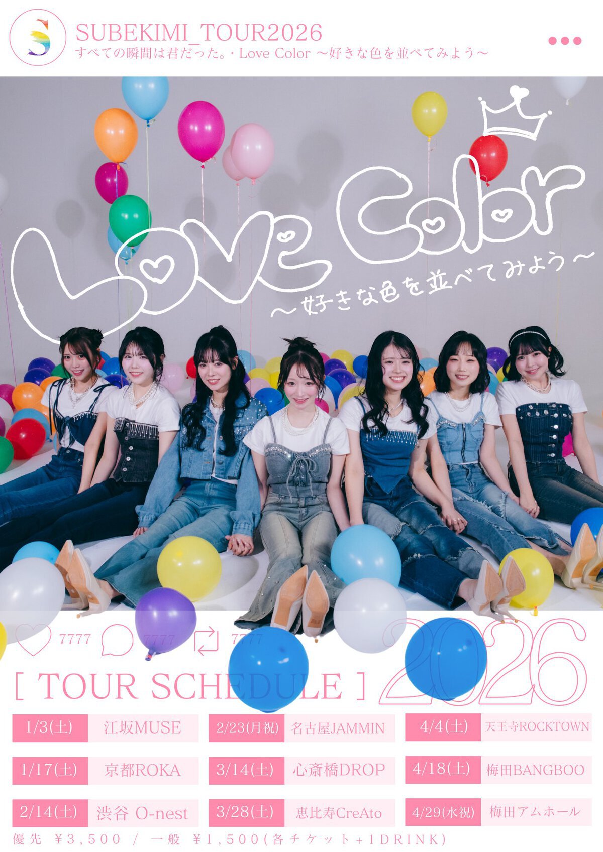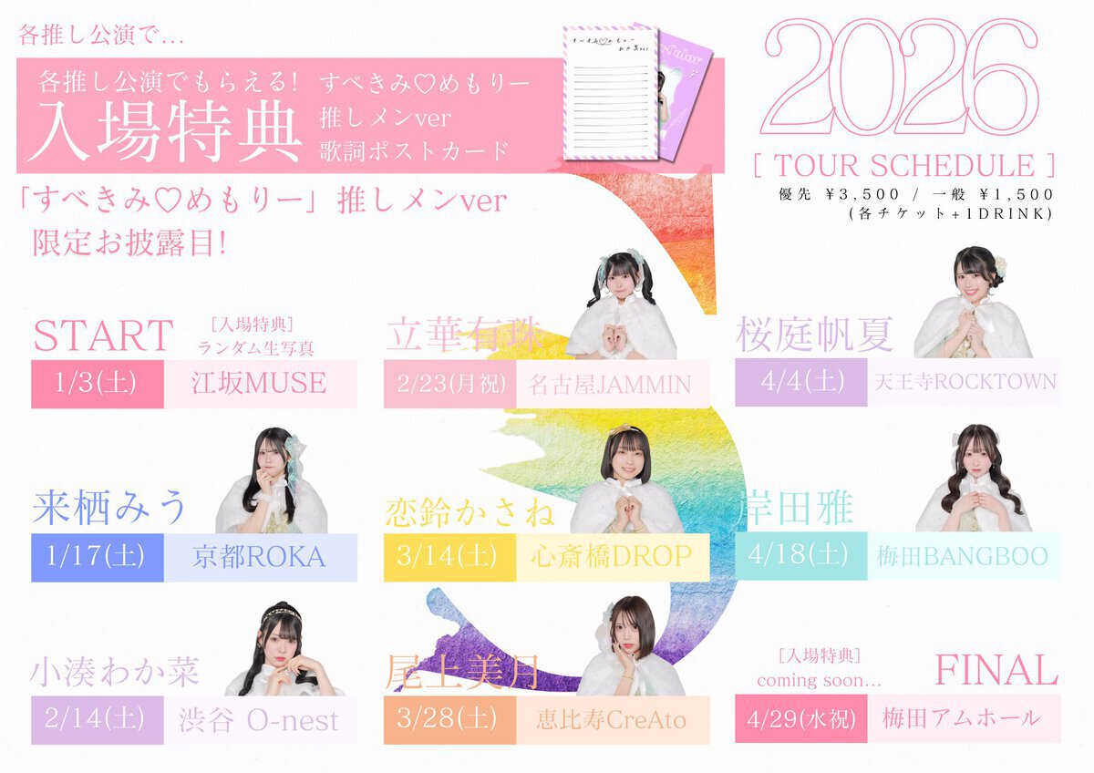 本日より、すべての瞬間は君だった。「Love Color〜好きな色を並べてみよう〜」ツアーのツアーFINAL、チケットFC先行販売がスタートします。